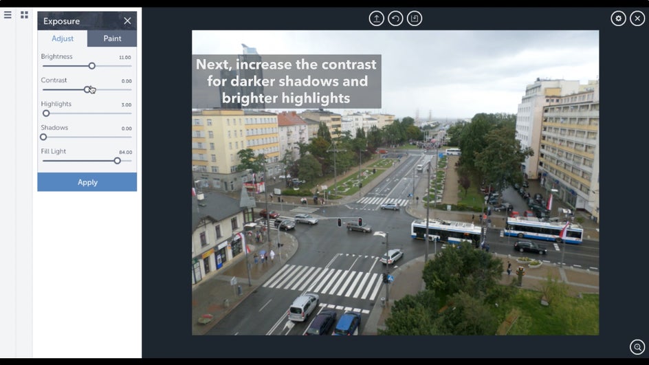 Correct your photo’s Exposure and increase the Contrast for darker shadows and brighter highlights