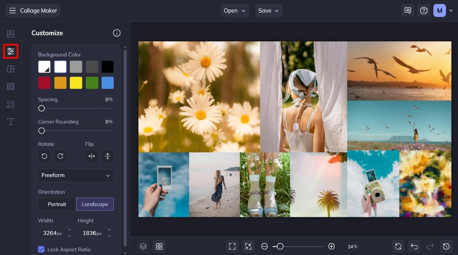 Head to the Customize tab to adjust your collage’s background color, spacing between cells, and corner rounding. You can also change your vision board’s size or tweak its aspect ratio. These subtle changes can make a big difference in how your vision board feels overall.