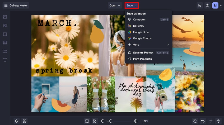 Once you’ve finished customizing your vision board, choose Save at the top of the screen. You can save it to your computer, BeFunky account, or another connected platform.