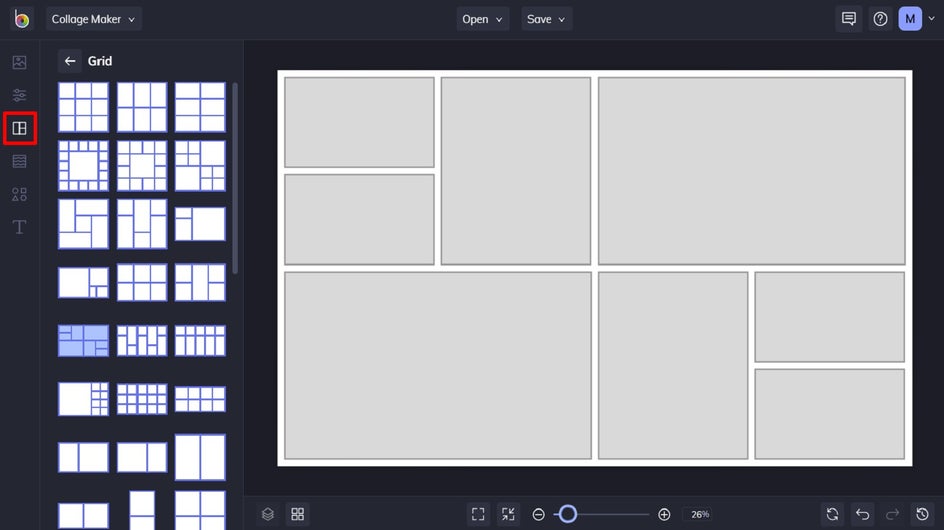 Firstly, you’ll want to choose how your collage will be laid out, including how many photos it will hold. To do this, navigate to Layouts in the main menu to the left, then choose a Layout Preset category to view all the collage layouts on offer.