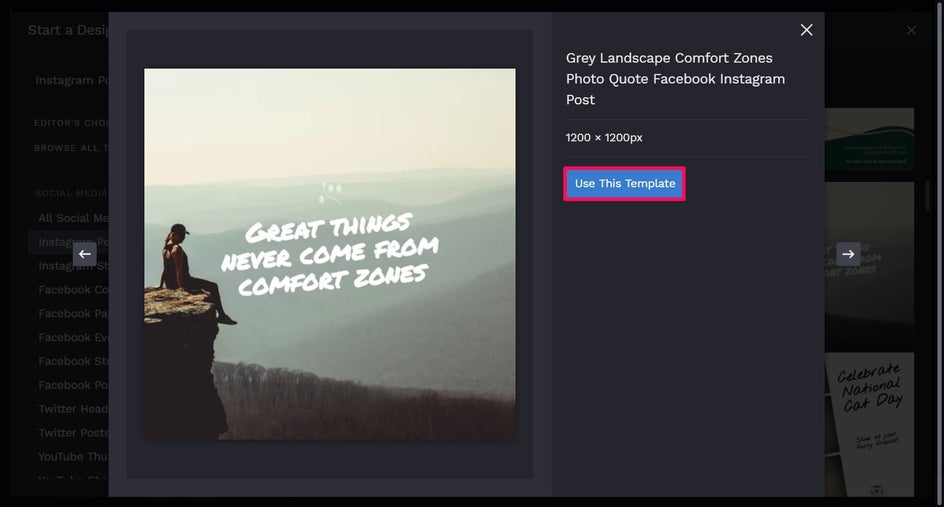 If you don’t have the time to create your own eye-catching quote image from scratch, then don’t fret. The Graphic Designer has perfectly sized, pre-designed Instagram templates that are as easy to customize as simply typing out your favorite quote.