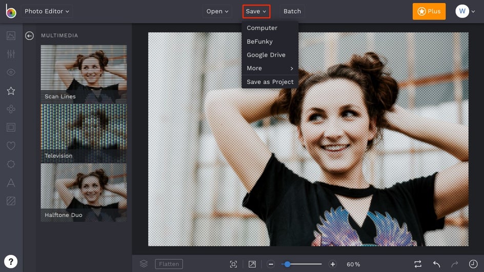 Ready to turn your own images into retro-inspired multimedia? To get started, head to BeFunky’s Photo Editor and upload your image using the Open button at the top of the page, or simply drag and drop your image file into the interface.