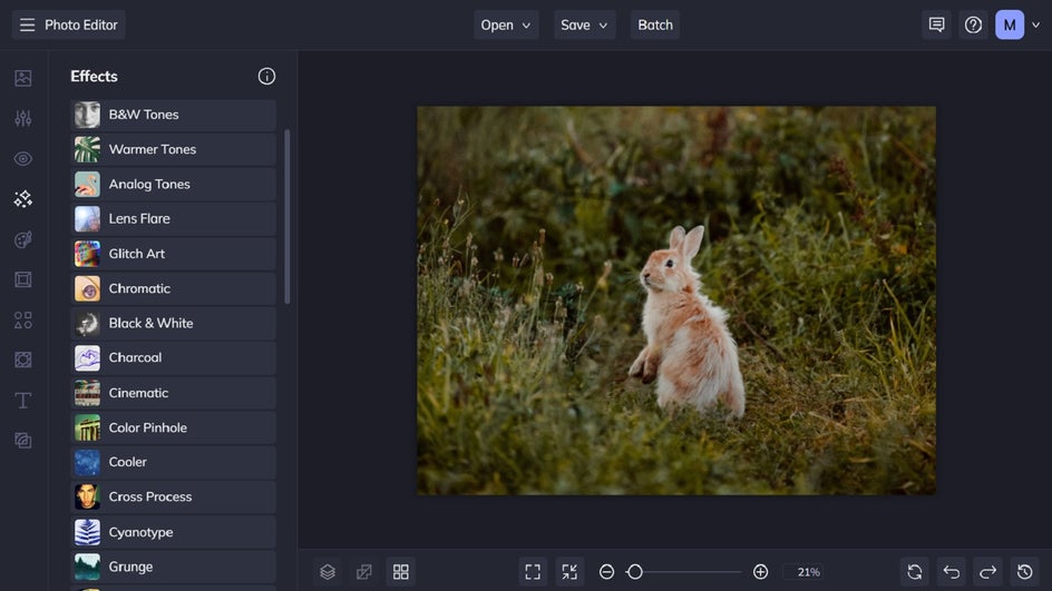 BeFunky’s Photo Editor is home to a wide range of photo effects, so you’re sure to find exactly what you had in mind. In the example below, we applied a B&W Tones effect.