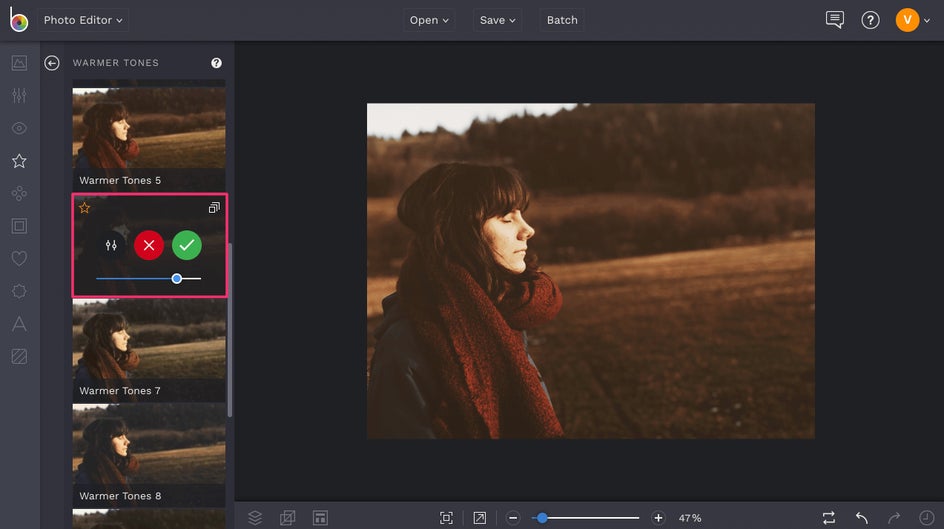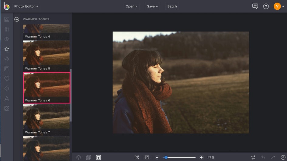 BeFunky’s Photo Editor is home to three tone effect categories, including B&W Tones, Analog, and Warmer. You can learn about each one in more detail below.
