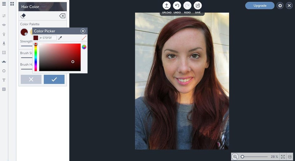 This is one of my favorite tools to bring a photo back to life. When the camera doesn't quite pick up your true hair color, simply reapply some color using this tool from the Photo Editor! Adjust the brush size and strength, then just paint over the desired areas for a welcome splash of extra color.