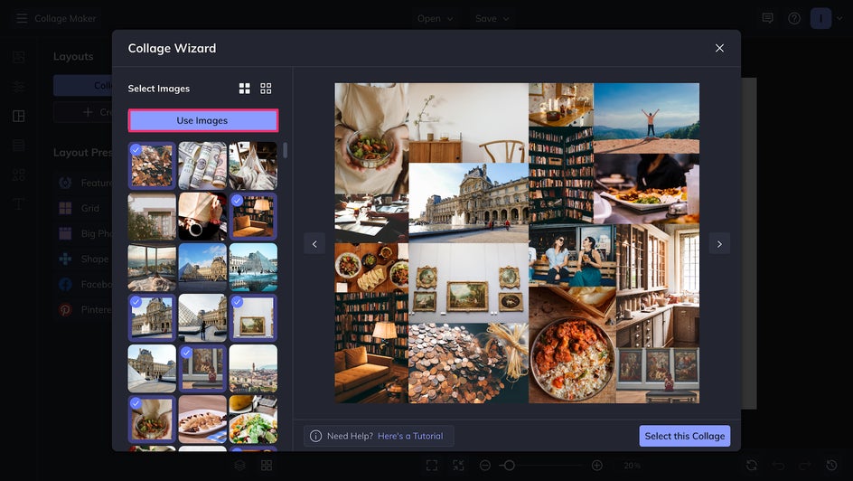 If you’re not sure what layout to pick, the Collage Wizard allows you to choose your images and then browse a few different layout options! This is definitely the way to go if you’re having trouble committing to a design.