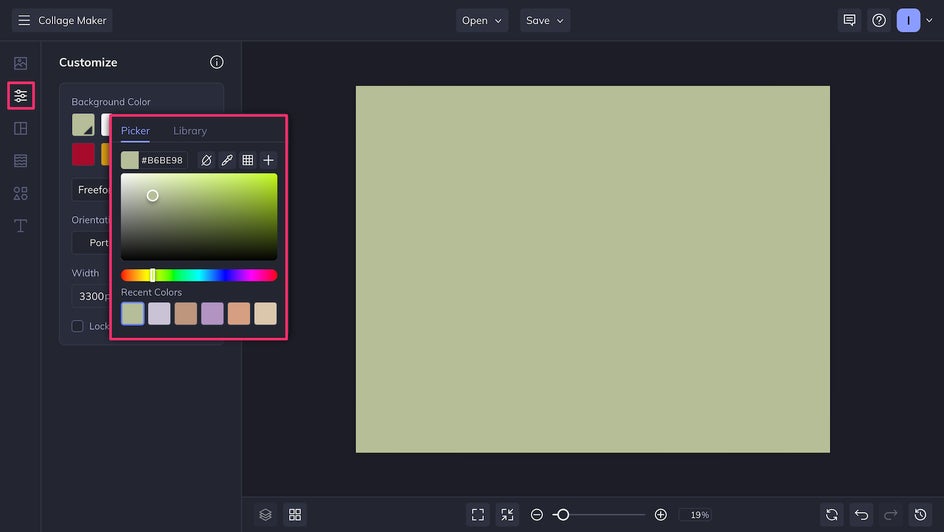 Your vision board doesn’t need to start with a blank white canvas. Use the Customize tab to change the background color: This will help personalize your vision board and provide a cohesive base for your images.
