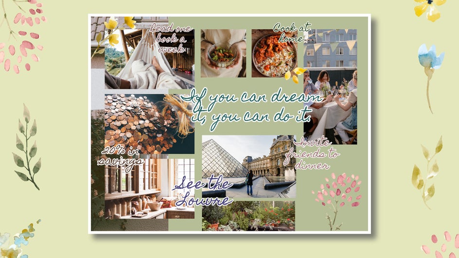 There are a lot of factors, including setting achievable goals, outlining a plan, and checking in with yourself periodically. But one particularly useful tool when it comes to following your New Year’s resolutions is a vision board. This is because you’ll have a greater chance of achieving your goals when you can physically see them in front of you. Rather than spend hours scouring magazines and cutting and pasting, consider creating a vision board in the Collage Maker, where you’ll have access to all the digital collaging tools you could want. By this time next year, you’ll be right on track to where you want to be!