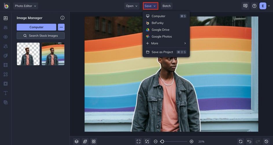 Save your image by heading up to the top of the Photo Editor and selecting Save, followed by your desired location.
