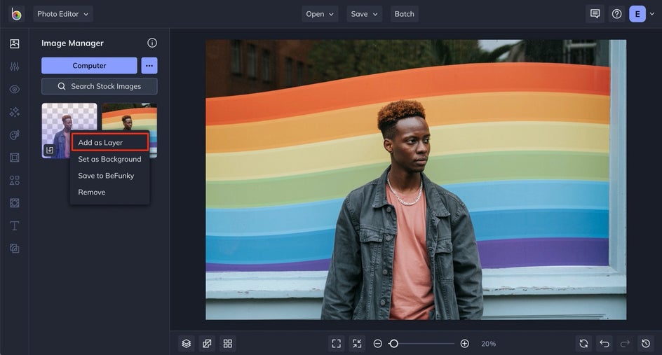 After creating your image layer, it will automatically appear as a layer on your original image. If you want to change the background, head to the Background Remover tool to do so in just a few clicks.