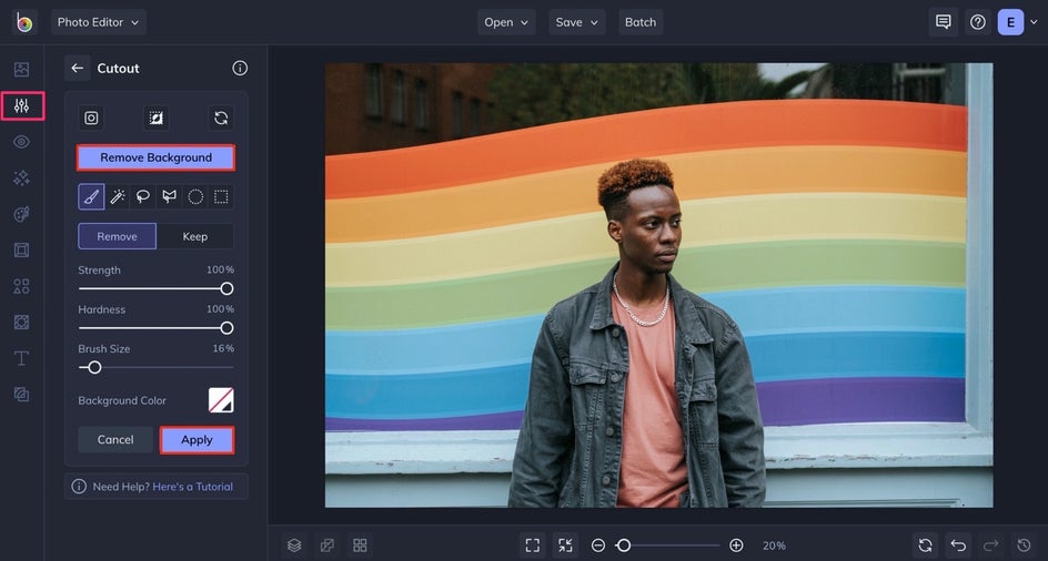 To start, create your image layer by uploading your photo. Then, click on the Edit tab, followed by the Cutout tool, and then Isolate Subject.