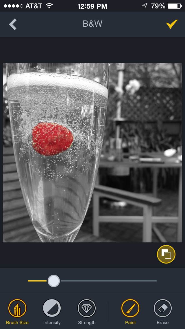You can work in two ways to selectively apply an effect. You can erase the effect from selective areas of your image. Alternatively, you can selectively apply the effect to parts of your image. To do this, select the Inverse button to return your image to the state it was previously in. Select the Keep button, then begin painting the effect in the areas you wish to apply it.