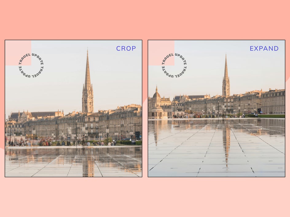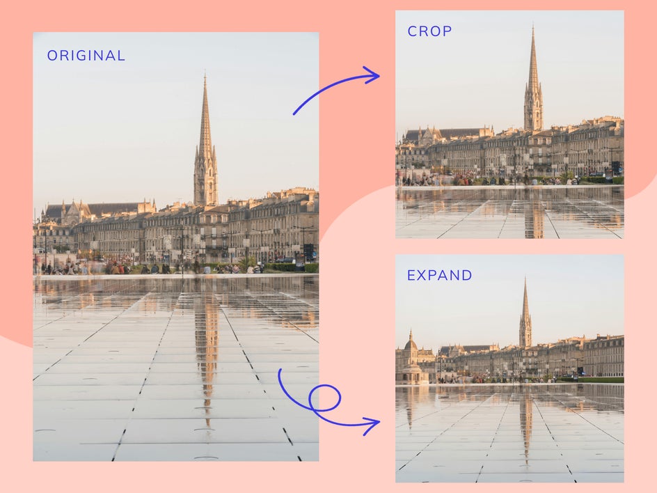 As you can see in this example, cropping this image to a 1x1 removes its main draw – the tower's reflection. By using Expand AI in BeFunky’s Photo Editor, you can keep the original photo intact, while the AI fills in the blanks of whatever aspect ratio you want to crop it to.