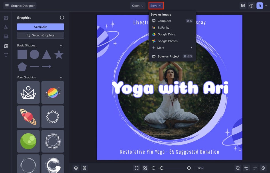 When you are finished, select Save at the top of your screen and then select Computer to save your file as a high-resolution JPEG that you can share on your social media page.