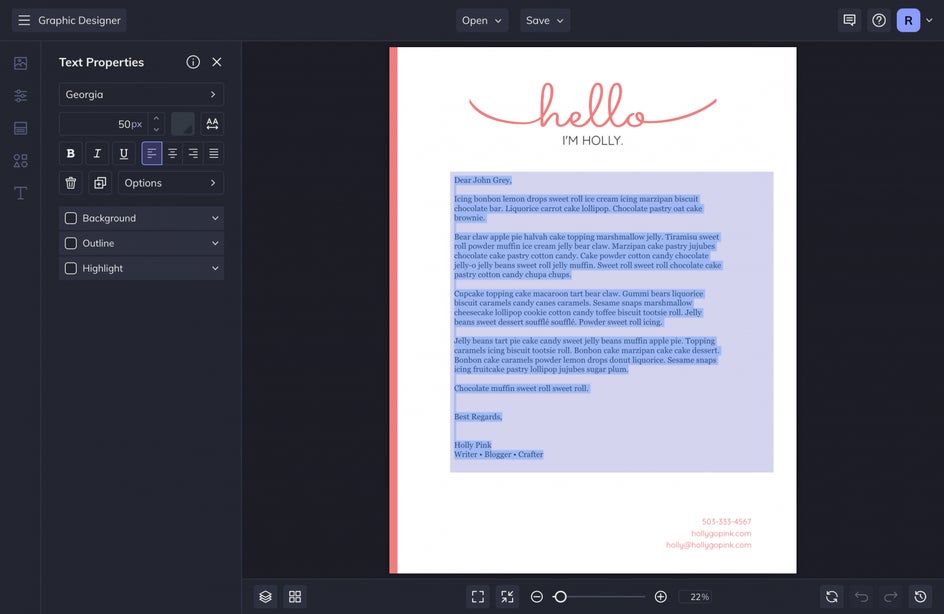 That is how you make your very own custom letterhead using BeFunky’s Letterhead Maker. You can use letterheads to write official business communications, or simply keep a personal letterhead for the times that you need to send a note to someone but want more of a professional touch.