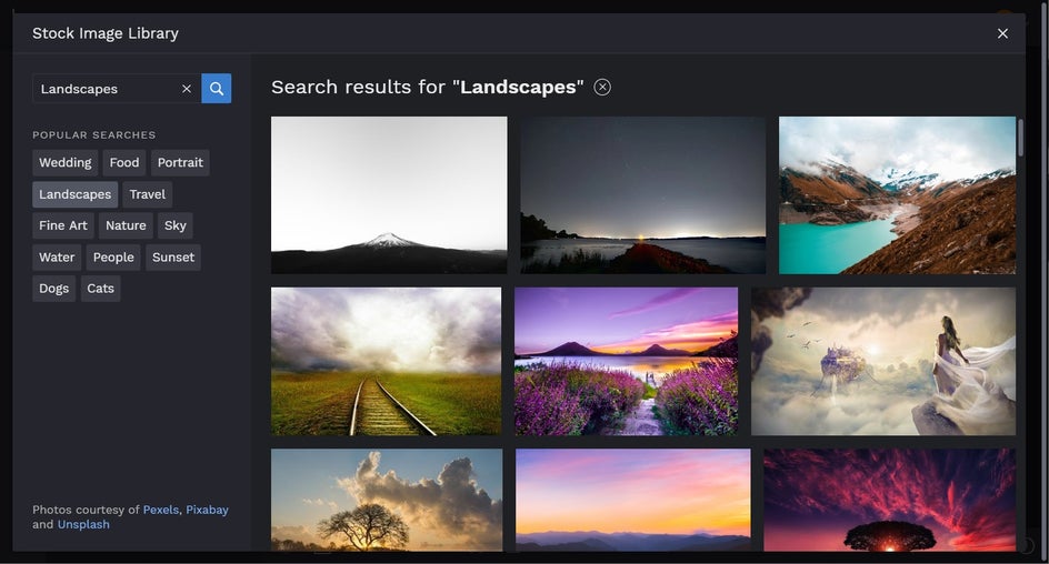 Want to use a stock photo instead? You can access BeFunky’s huge library of stock images by navigating to Image Manager, followed by Search Stock Images. Type your image search term into the search bar on the top-left or choose from popular search tags below. To add images from the Stock Image Library to your Image Manager, just click on them and a blue checkmark will appear in their bottom-left corner.