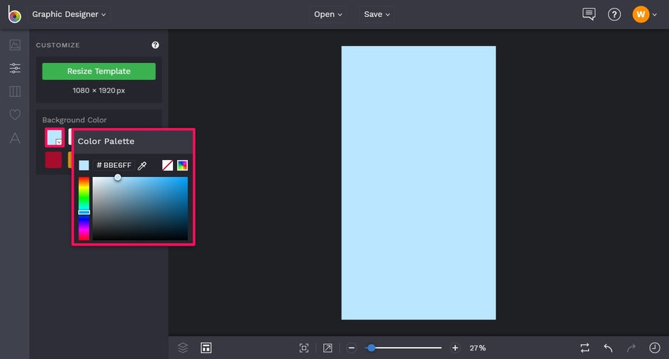 Finally, we’re going to show you how you can utilize BeFunky’s Graphics Library to create a fun, graphic-driven phone wallpaper instead. Again, start with a blank canvas in your phone’s required dimensions, but this time, we’re going to change the background to a plain color, rather than an image.