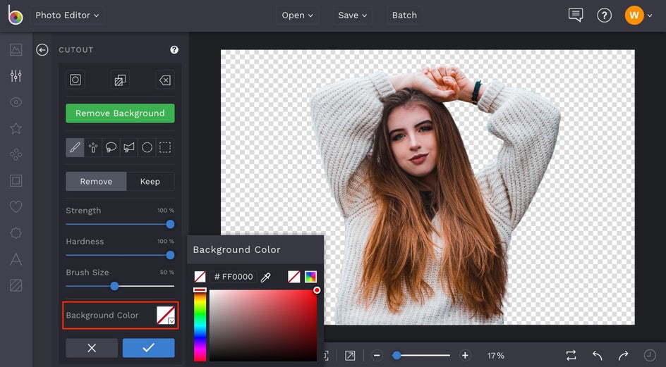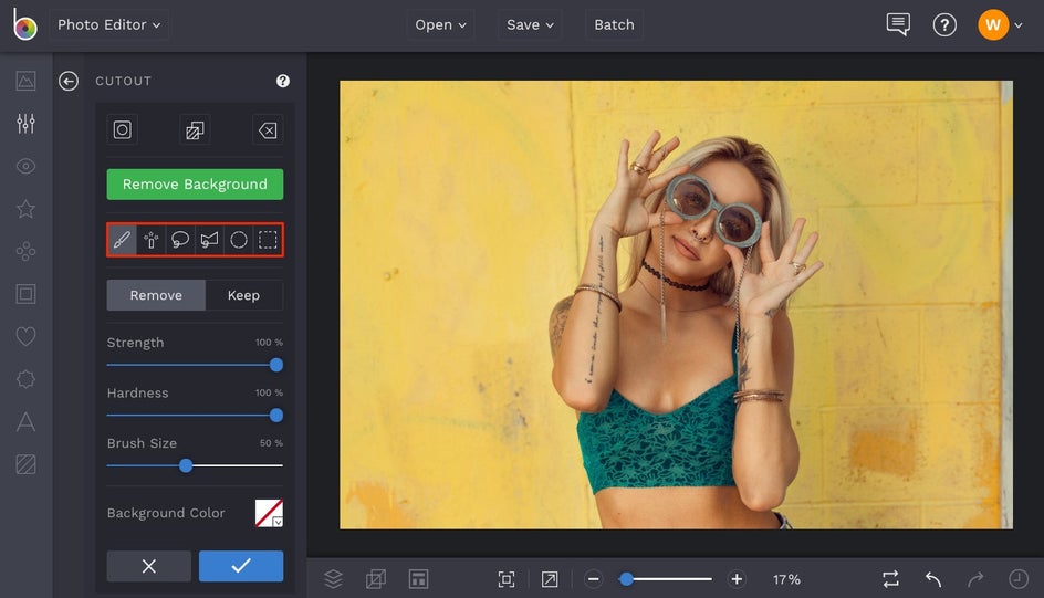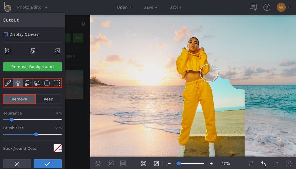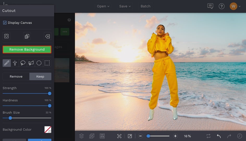The Background Remover isolates your subject and removes the background in a single click. How convenient!
