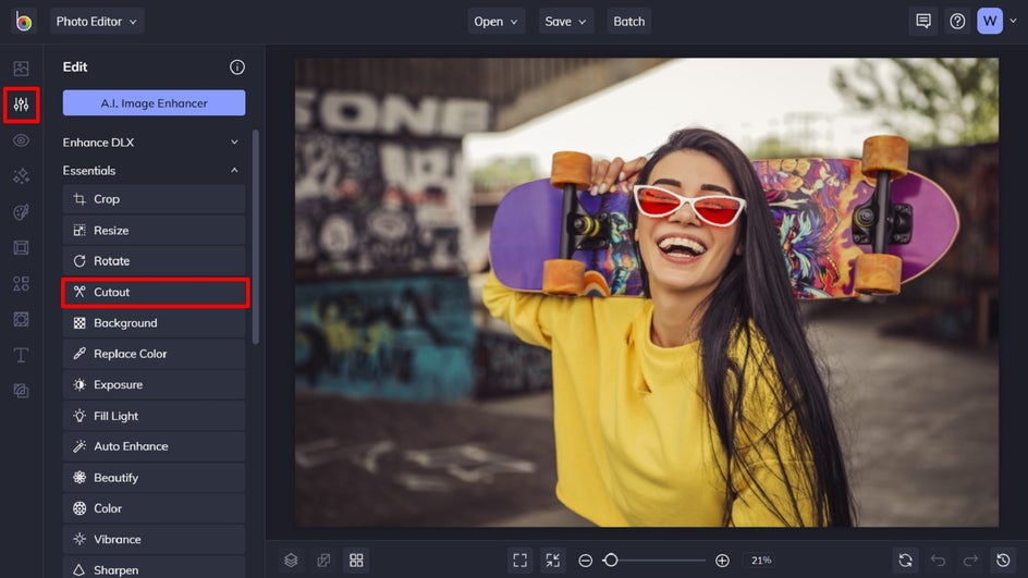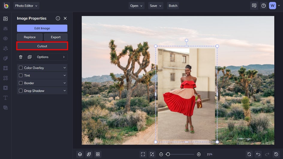 Ready to get started? Open your image in the Photo Editor, then navigate to the Cutout Tool within the Edit menu.