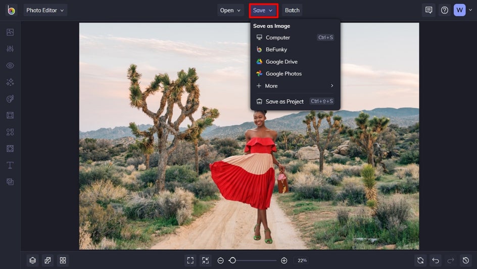 Once you’re happy with your final image, click Save at the top of the screen. Then, select your desired save location.