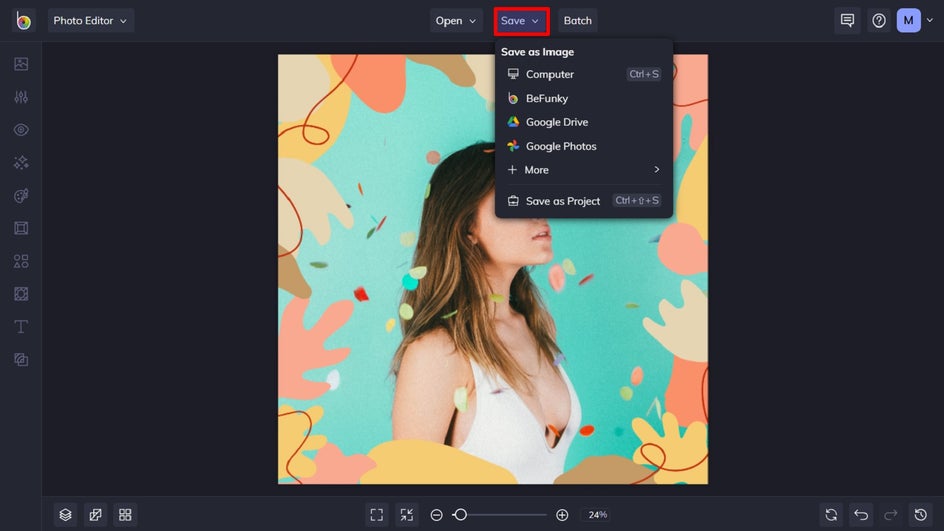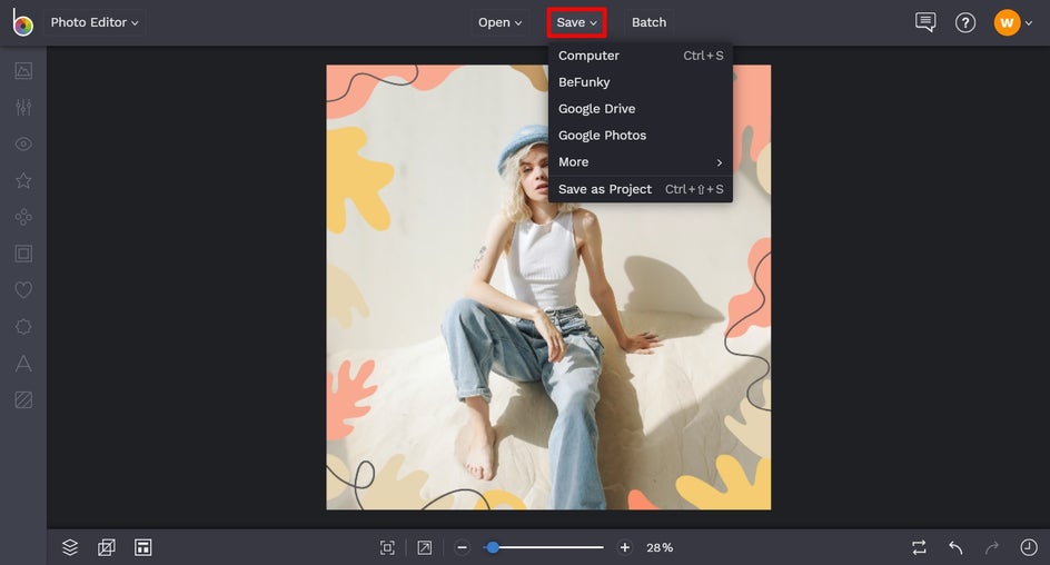 Once your graphic photo frame is complete, it’s time to save your design. Click Save at the top of the screen, then choose your desired save location and format.
