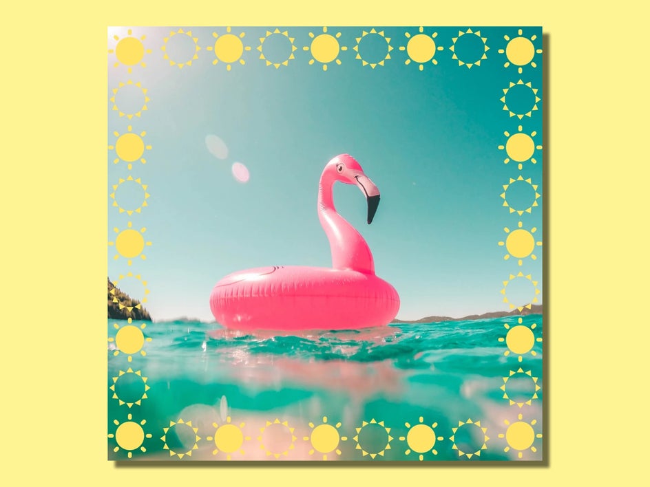 Here, we’ve chosen two sun symbols to highlight the theme of our image, then repeated them around the edges of the photo to frame it nicely. Having both a solid and outlined sun creates an eye-catching contrast too.