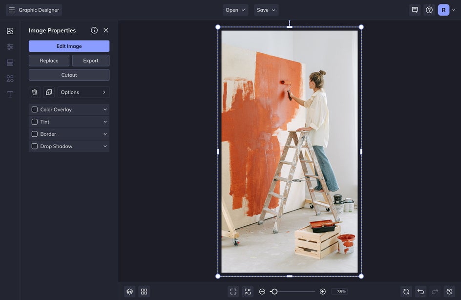 Once you have your images uploaded, select one of them and drag and drop it onto your canvas. Drag any of the corners outward to format it to your canvas. You can double-click on the image if you want to change the crop composition of your image.