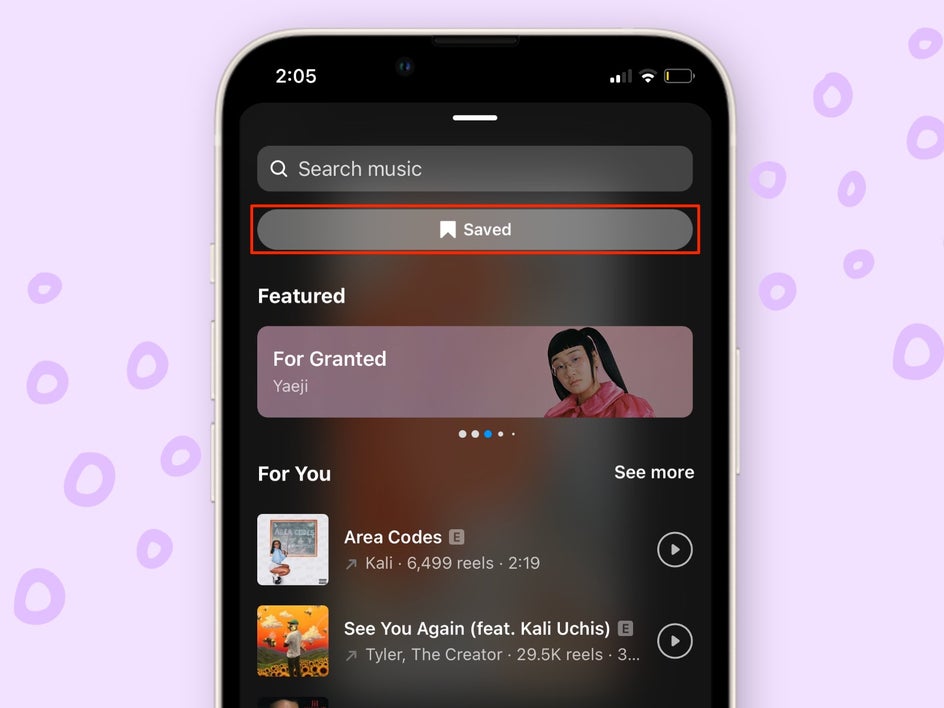 You can also find and save audio clips on Instagram while you are browsing. I typically will save audio to my profile when I hear a song I like so that I can simply search my saved audio library on Instagram when I need to create content.