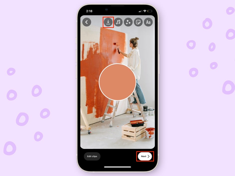 When you are all set, you want to make sure that you save the Reel to your phone’s camera reel. I always do this just as a safety measure. You will notice that if you do, you can’t export the audio with it, but just make a note somewhere of the audio you used for the future. After you save it to your phone, select Next at the bottom of the screen.