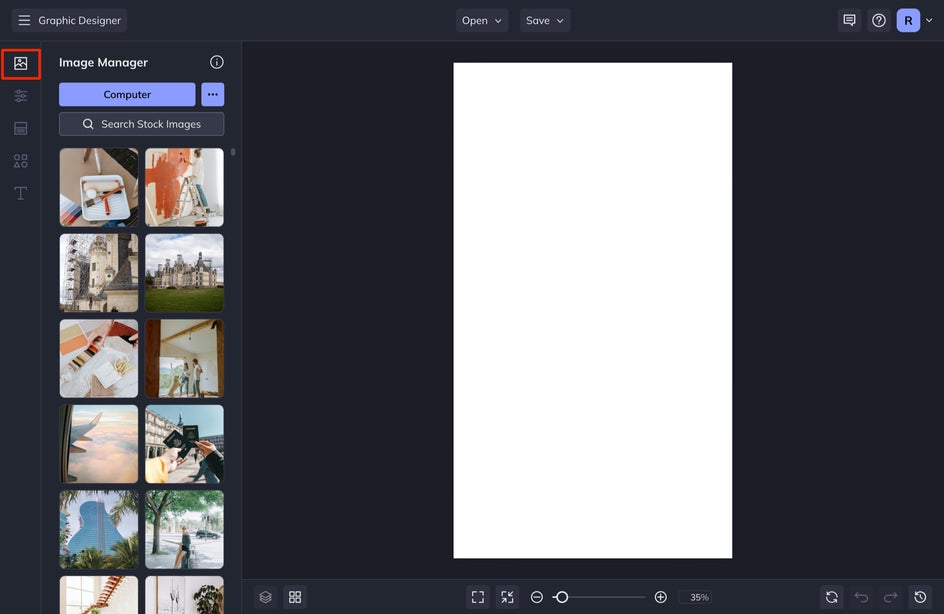 Head to the Image Manager in the left-hand menu and select Computer if you have your own photos to upload or Search Stock Images if you are simply wanting to create an inspirational aesthetic theme.