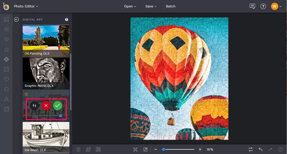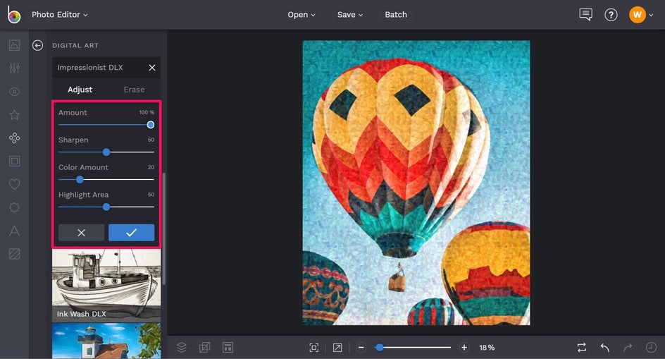 Now it’s time to turn your photo into art! Navigate to the Artsy menu to explore the wide range of effect options.