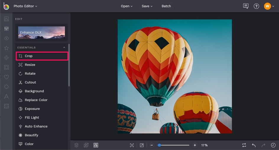 Ready to turn your favorite photos into prints? To get started, head to BeFunky’s Photo Editor and open the image you wish to turn into an art print.