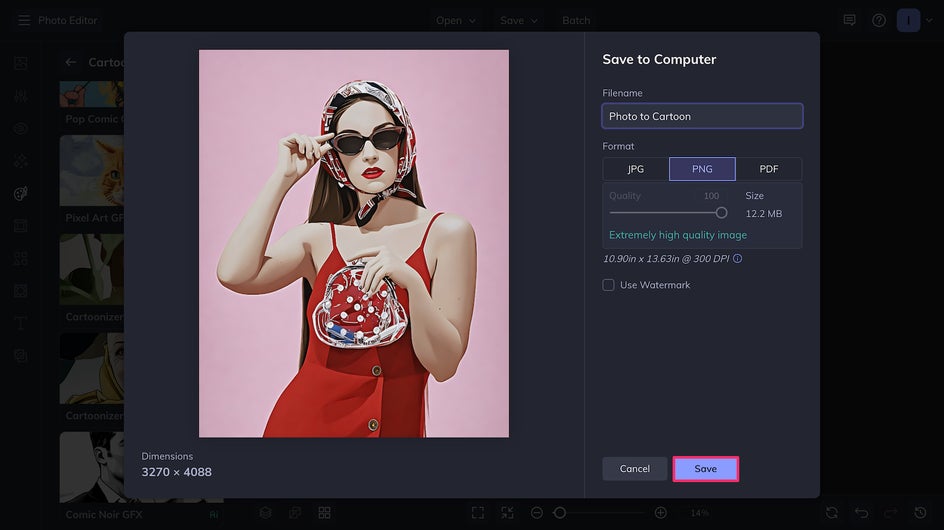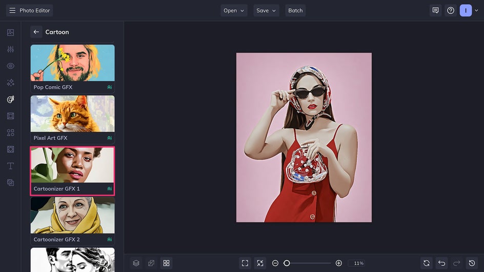 Whether you want to turn a photo into a cartoon in a single click or are looking for something more customizable, BeFunky’s Cartoon effects have got you covered. Just follow this simple three-step tutorial. You’ll be able to apply these steps to any of the Photo Editor’s AI cartoon effects.