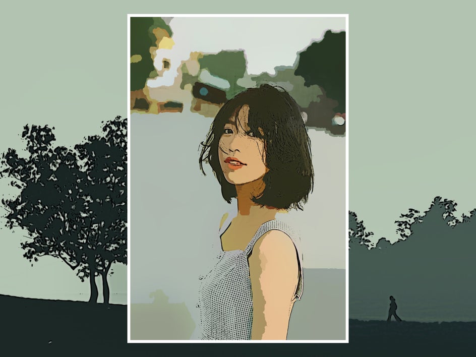 This effect echoes the pop art of artists like Roy Lichtenstein and Andy Warhol, featuring bright, flat colors, black shading, a mix of lineless and lined shapes, and plenty of texture. Try using it for postcards or social media headers.