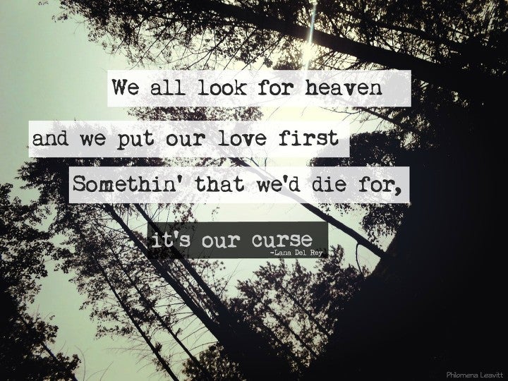 We all look for heaven and we put our love first. Somethin' that we'd die for, it's our curse. - Lana Del Rey