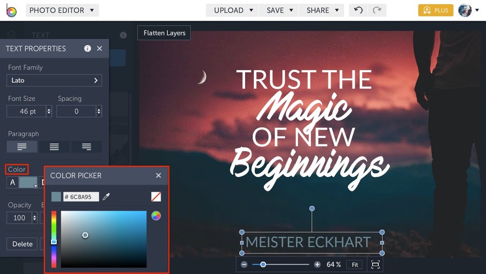 Now that you’ve created your masterpiece, you can use it as inspiration for yourself by creating a phone background or motivating others by sharing it on social media. Now that you know how easy it is to add text to photos and create your own inspirational picture quotes, you’ll definitely want to use BeFunky’s Photo Editor to make more.