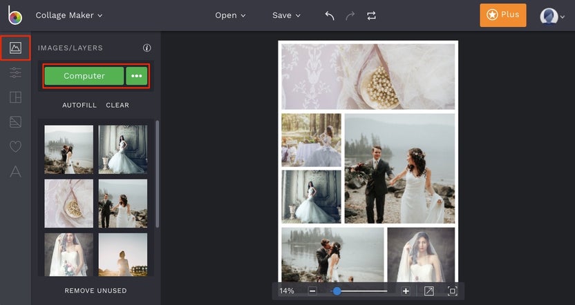 We’ll focus on adding cohesive elements to marry our logo design with our cover photo in this step. Start by clicking on the Image Manager tab, followed by the blue Computer button to upload a brand-related image to your canvas to act as your cover photo’s background. If you prefer to select one of our stock images, click the Search Stock Images option.
