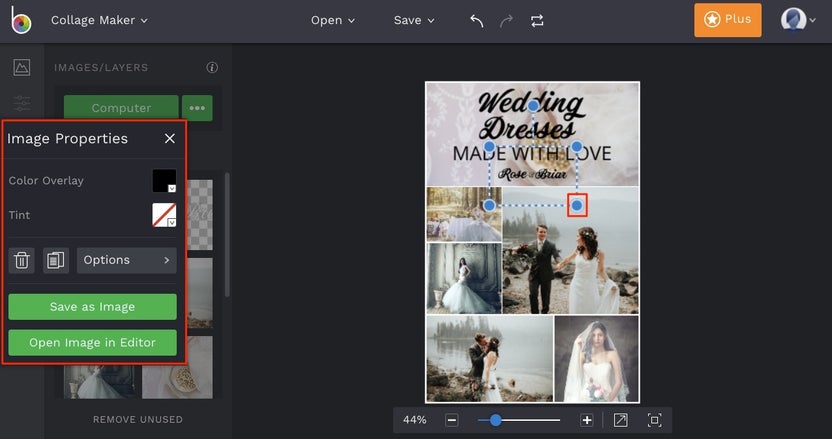 Once you’ve added an image, resize it to fill the entire canvas by dragging the blue circles in the corners around your image or by right-clicking on the image, hovering over the Canvas, and clicking Fill Canvas.