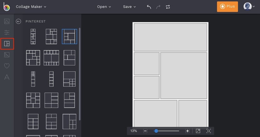 The ideal size for Pinterest’s cover photo is 1200 x 675 or 16:9 canvas. For this application, we’ll choose BeFunky’s 1920 x 1080 (16:9) presentation template.