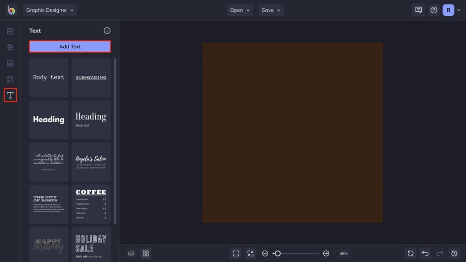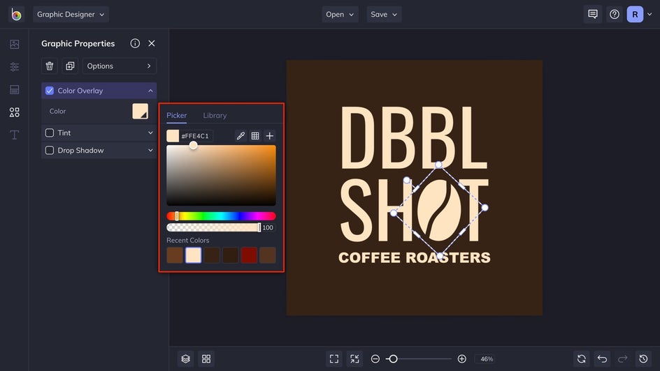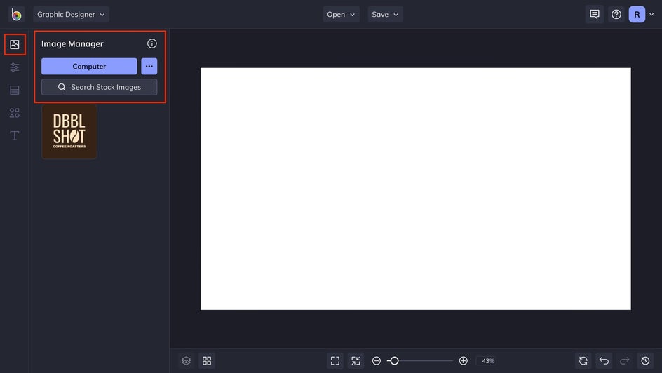 If you already have a logo, feel free to skip this part. If not, you’ll want to start by opening the Graphic Designer to follow along. In this tutorial, we will be creating a logo for a local coffee shop. Let’s get started.