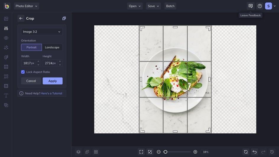 When you're scrolling through Pinterest, you may notice that there are lots of vertical images with a 2:3 aspect ratio. To fit in with the Pinterest algorithm and have your Pins shared more, it is best to have all your images sized to this aspect ratio. The BeFunky the Batch Image Resizer and Crop tool are going to be your best friends when you start using Pinterest for your food blog! Using the Crop tool, you can select the specific 2:3 aspect ratio, but you can also use 1000 X 1500 pixels in the Image Resizer.