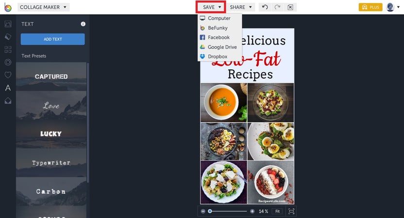 Alternatively, you can save it to a destination such as your computer, Google Drive, or Dropbox via the same Save button, and then upload it to Pinterest manually. Either way works!