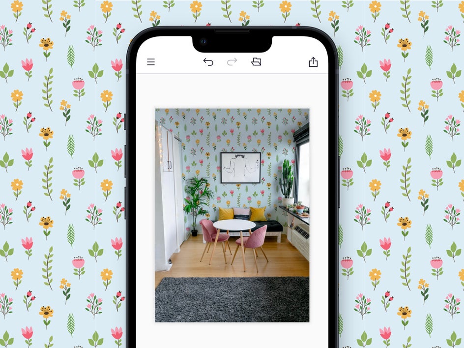 To try out wallpaper before buying, you can upload a picture of the wallpaper you want to use – or your own wallpaper design – and set the layer to Multiply. Make sure the wallpaper is behind the furniture using the Layers feature; or, if you’re using a photo of an already furnished room, try the Cutout tool to erase any overlapping sections. Remember, you can also try out paint and wallpaper on mobile with the BeFunky app!