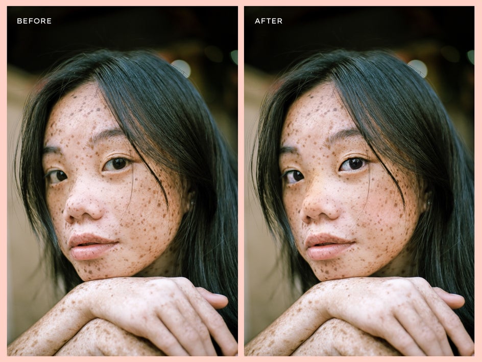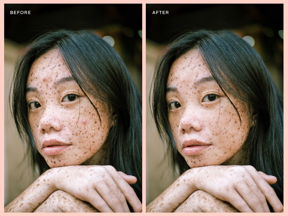 Pro Tip: Make sure you don’t remove aspects of the person’s skin that makes them unique. Unless they ask, don’t airbrush out freckles, moles, or birthmarks.