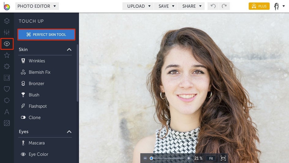 One of the best tools to start with is the Perfect Skin Tool. It’s a really intuitive tool, as it erases blemishes while maintaining the skin’s natural texture. That means blemishes, wrinkles, scars, and dark circles are eliminated without making your model’s complexion look unnaturally airbrushed!