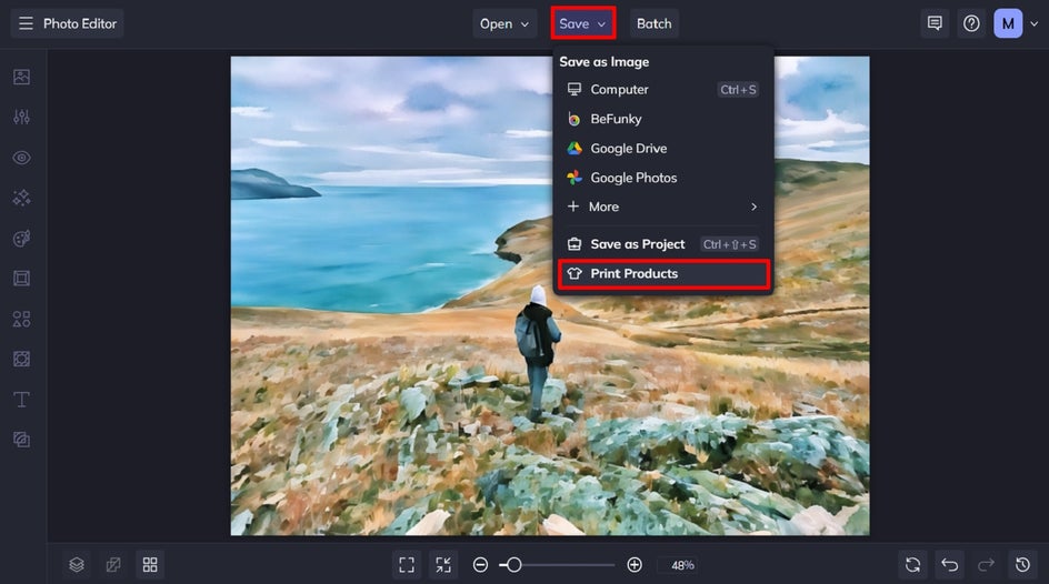 BeFunky is also mobile-friendly, making it easy to save your finished design directly to your phone’s photo library. From there, you can use a Bluetooth printer or mobile printing app to print right from your device. Whether you’re using a mini portable printer for quick photo strips or a Wi-Fi-enabled home printer for larger formats, you can print on-the-go with little effort.