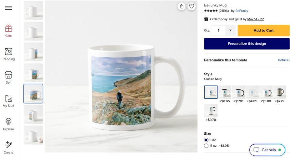 Once you've selected a product, click Personalize this design to adjust the placement and size of your BeFunky project.