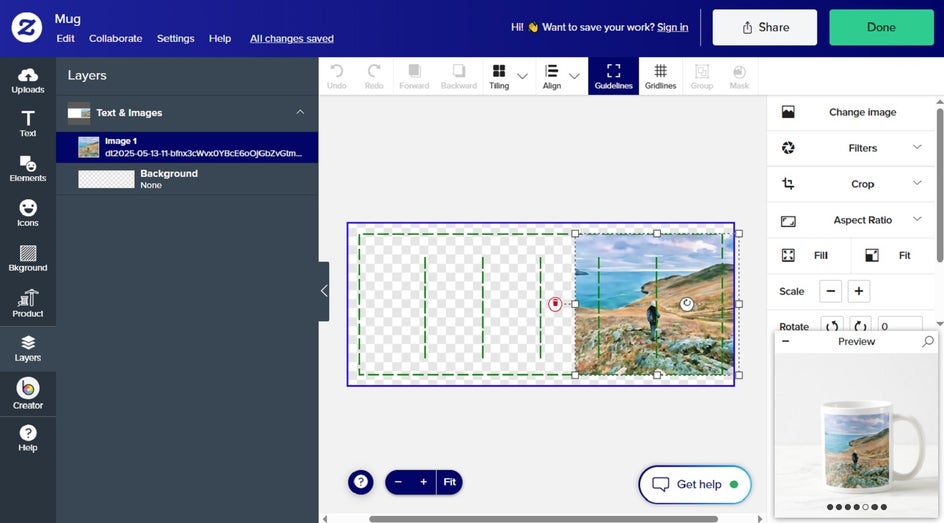 You can make more advanced edits to features like the aspect ratio and crop of your image. You can also view a 3D version of your mug from all angles to see how the final product will look.