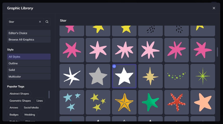 You can even search for specific graphics using the search bar in the top-left of the screen. Click on the graphics you wish to use, and they’ll be available in the Your Graphics section once you exit the Graphic Library.