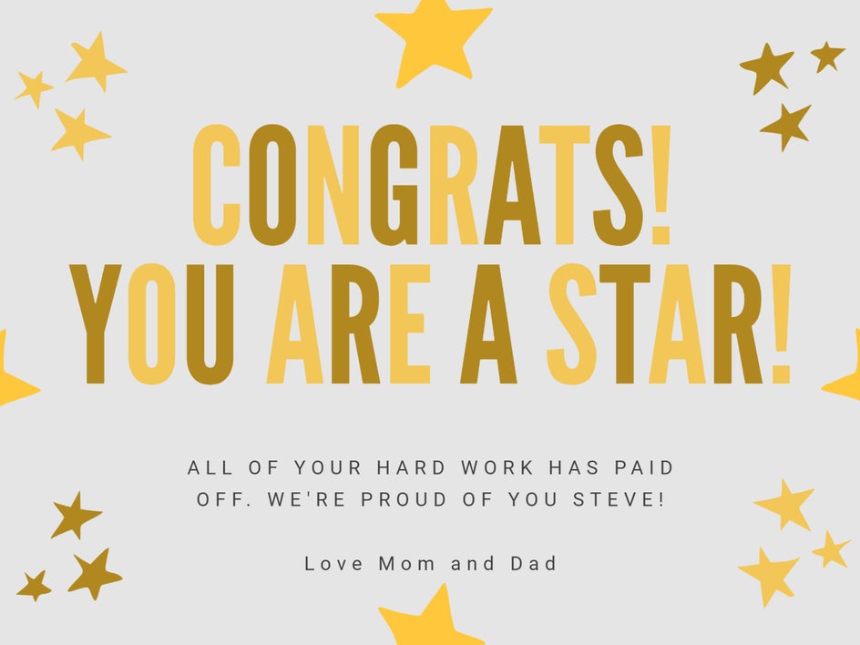 Ta-da! Wasn’t that easy? By customizing one of our premade congratulations card templates, there’s no limit to what you can create!